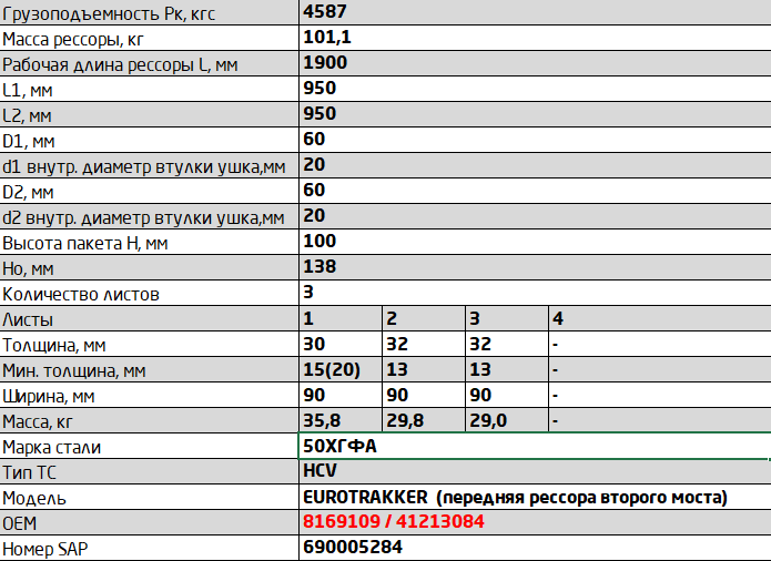 | Наименование | рессора 3 лист перед.! L=1900\ Iveco |