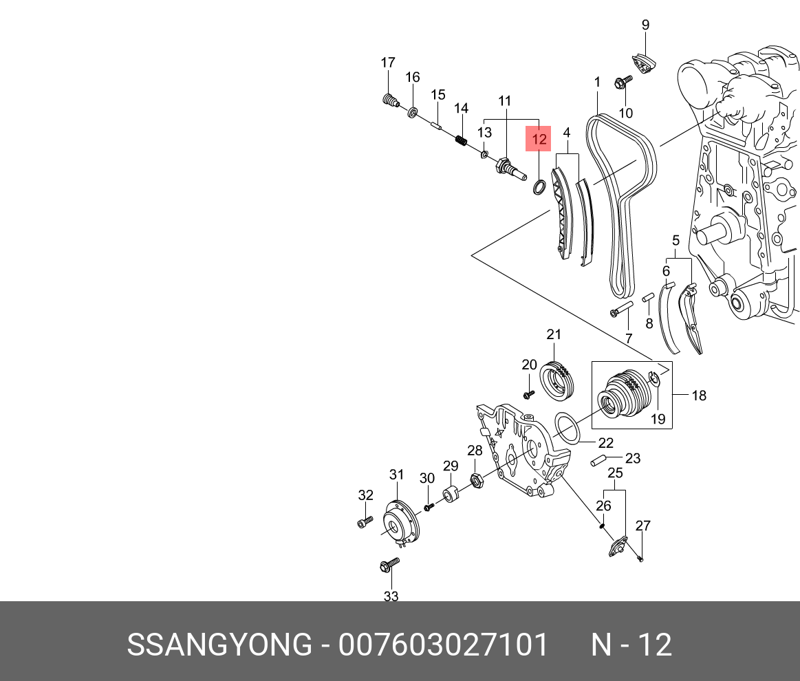 007603027101 SSANG YONG Шайба уплотнительная натяжителя цепи DSL 00760-3027101