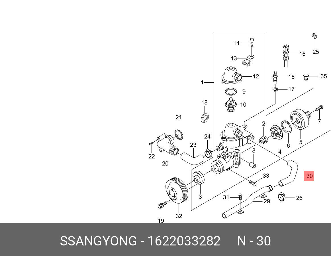 1622033282 SSANG YONG Шланг SSANGYONG Rexton (02-),Stavic (13-),Korando (96-) отопителя салона OE