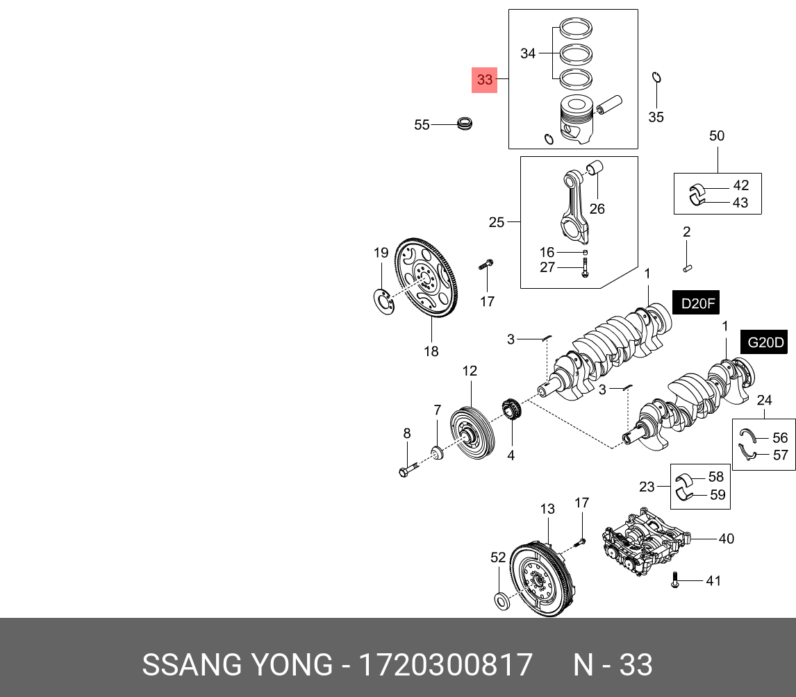 172 030 08 17 SSANG YONG Поршень двигателя SSANGYONG Actyon (12-) (G20D) (с пальцем и кольцами) OE