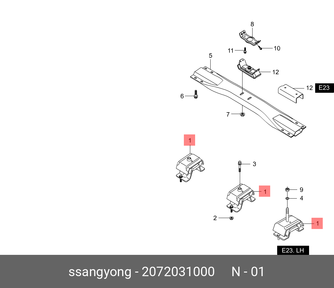 2072031000 SSANG YONG Опора двигателя SSANGYONG Actyon (06-),Kyron (07-),Actyon Sports (09-/12-) (4WD)