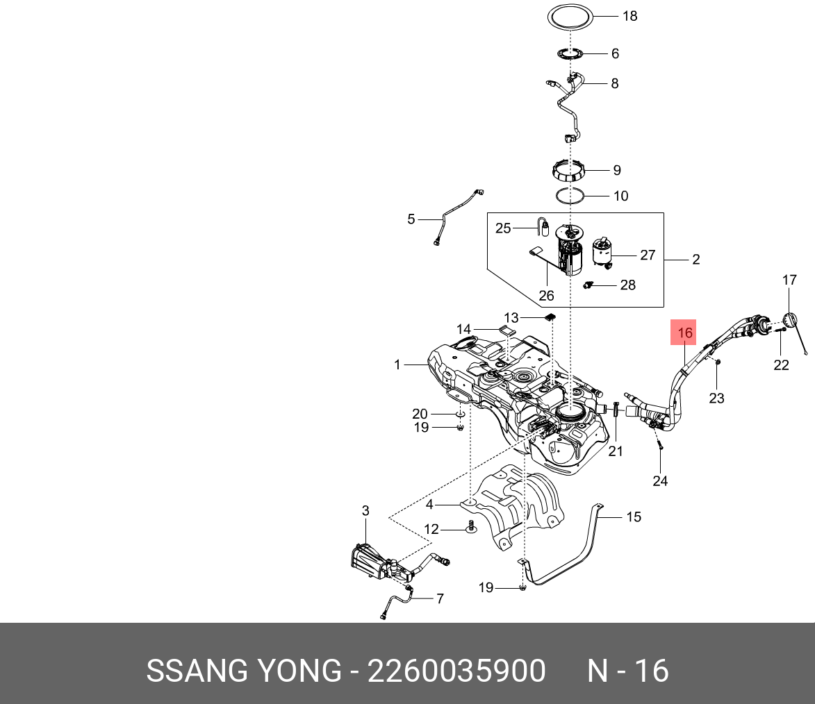 2260035900 SSANG YONG Шланг топливный SSANGYONG Tivoli (15-) (G16F) OE