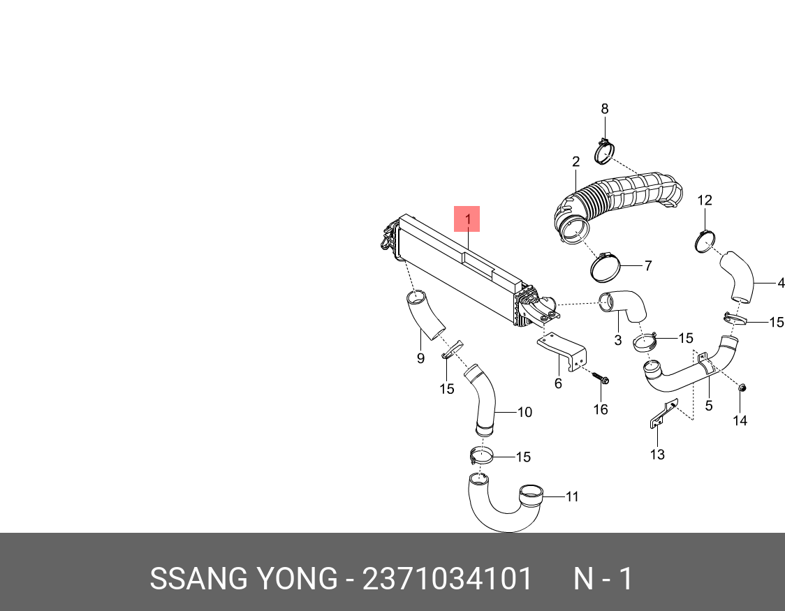 | Наименование | Охладитель SSANGYONG Actyon (10-) (D20) наддувного воздуха OE |