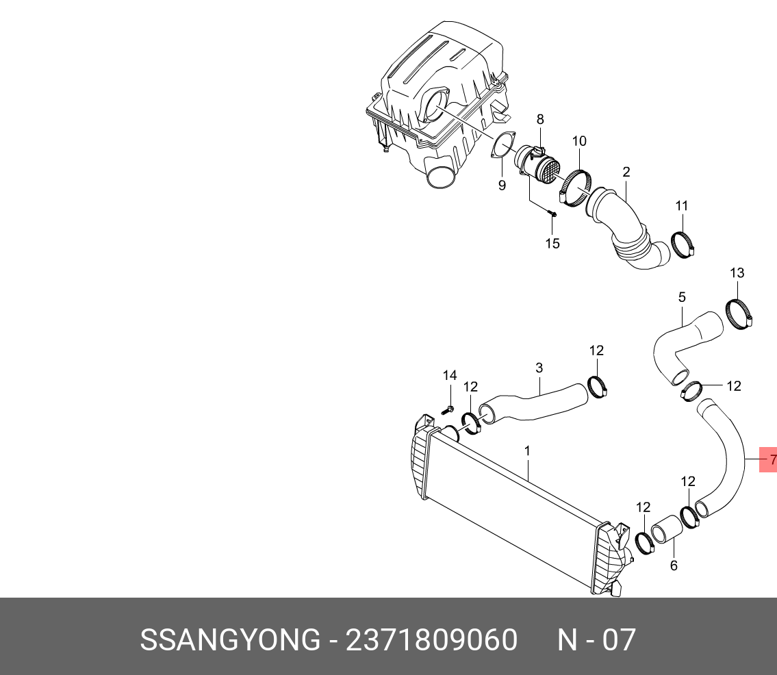 2371809060 SSANG YONG Патрубок SSANGYONG Kyron (05-) (D20) интеркулера выпускной длинный OE