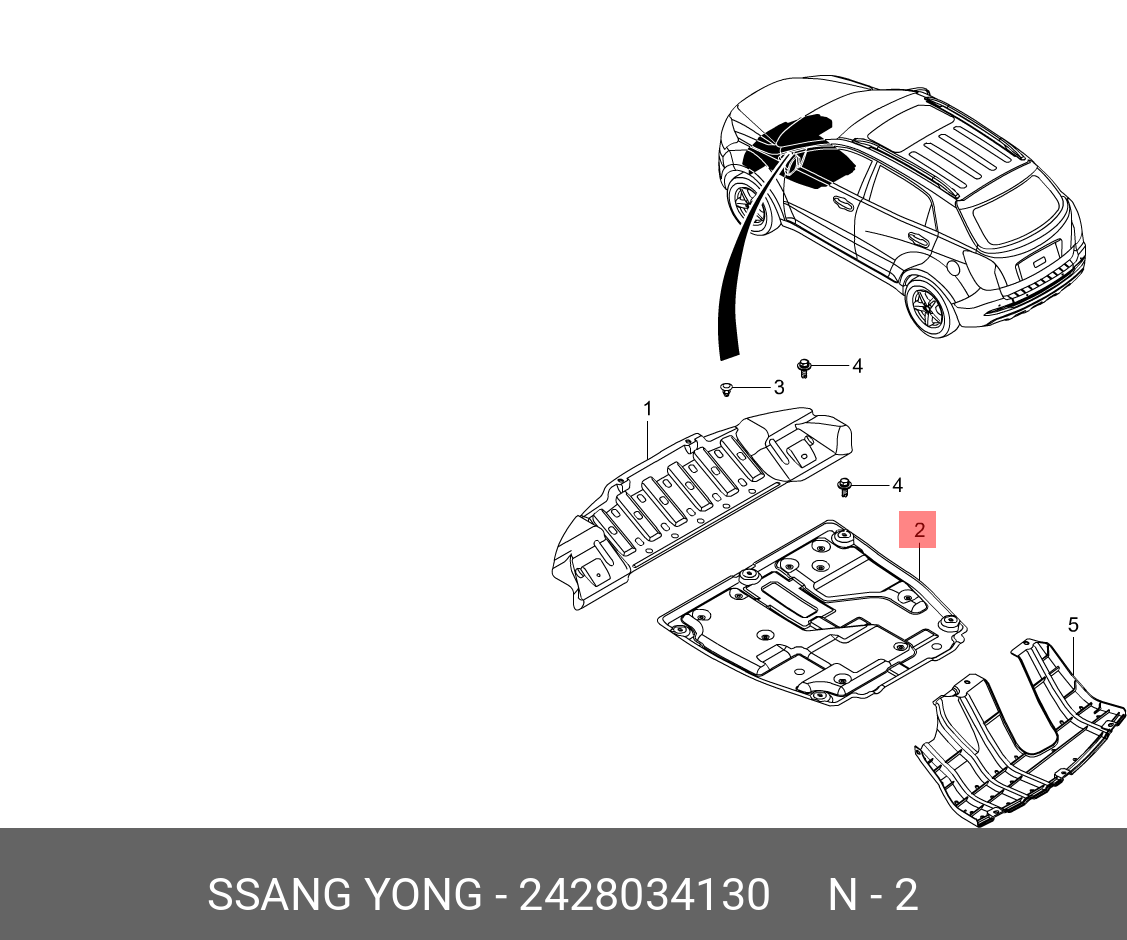 2428034130 SSANG YONG Защита двигателя SSANGYONG Actyon (10-) (D20/22) пластик OE