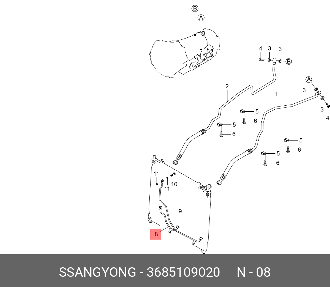 3685109020 SSANG YONG Трубка охлаждения АКПП 36851-09020