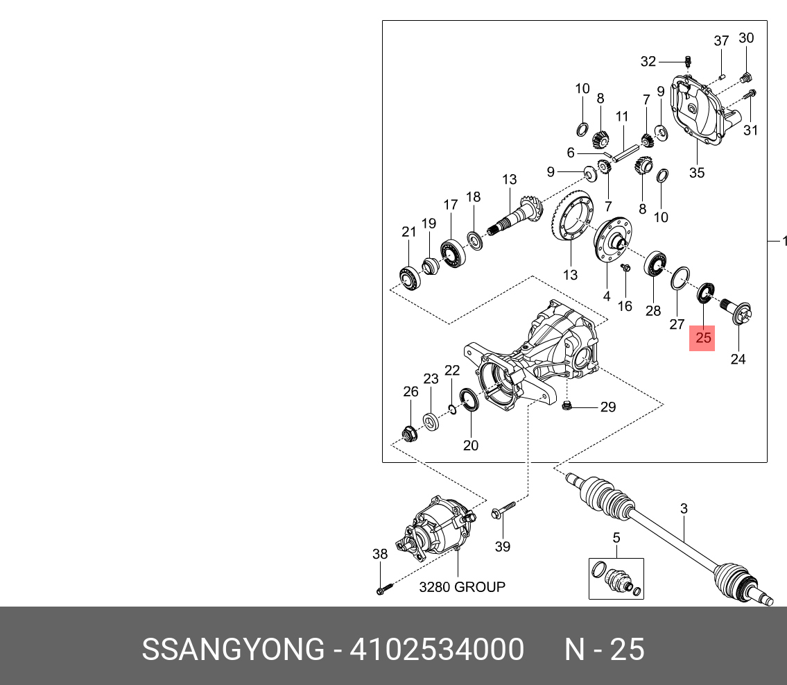 4102534000 SSANG YONG Сальник SSANGYONG Actyon (10-) (D20/22,G20D) дифференциала редуктора заднего мос