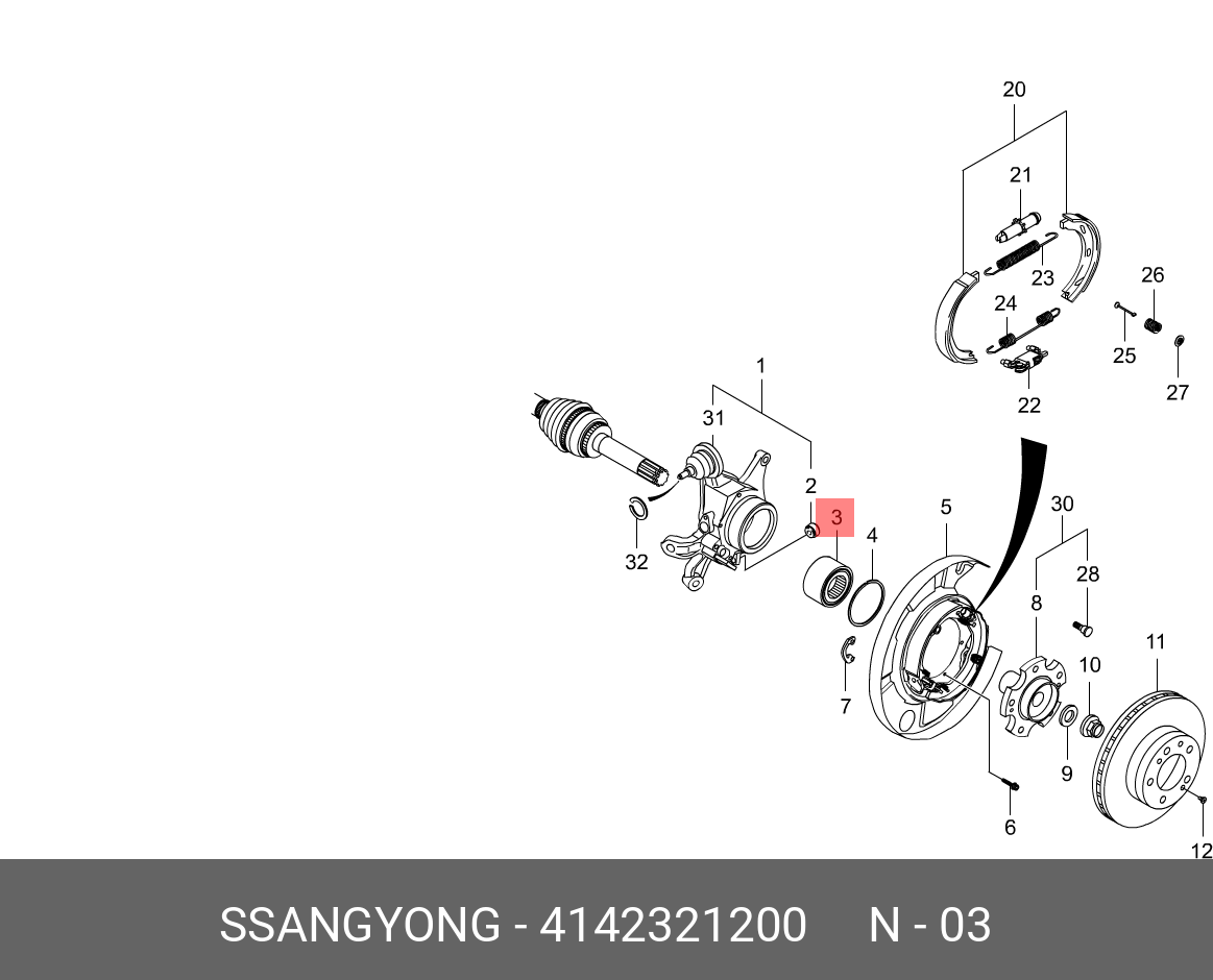 4142321200 SSANG YONG Подшипник ступицы SSANGYONG Kyron (05-),Rexton (06-),Stavic (13-) задней (multi-
