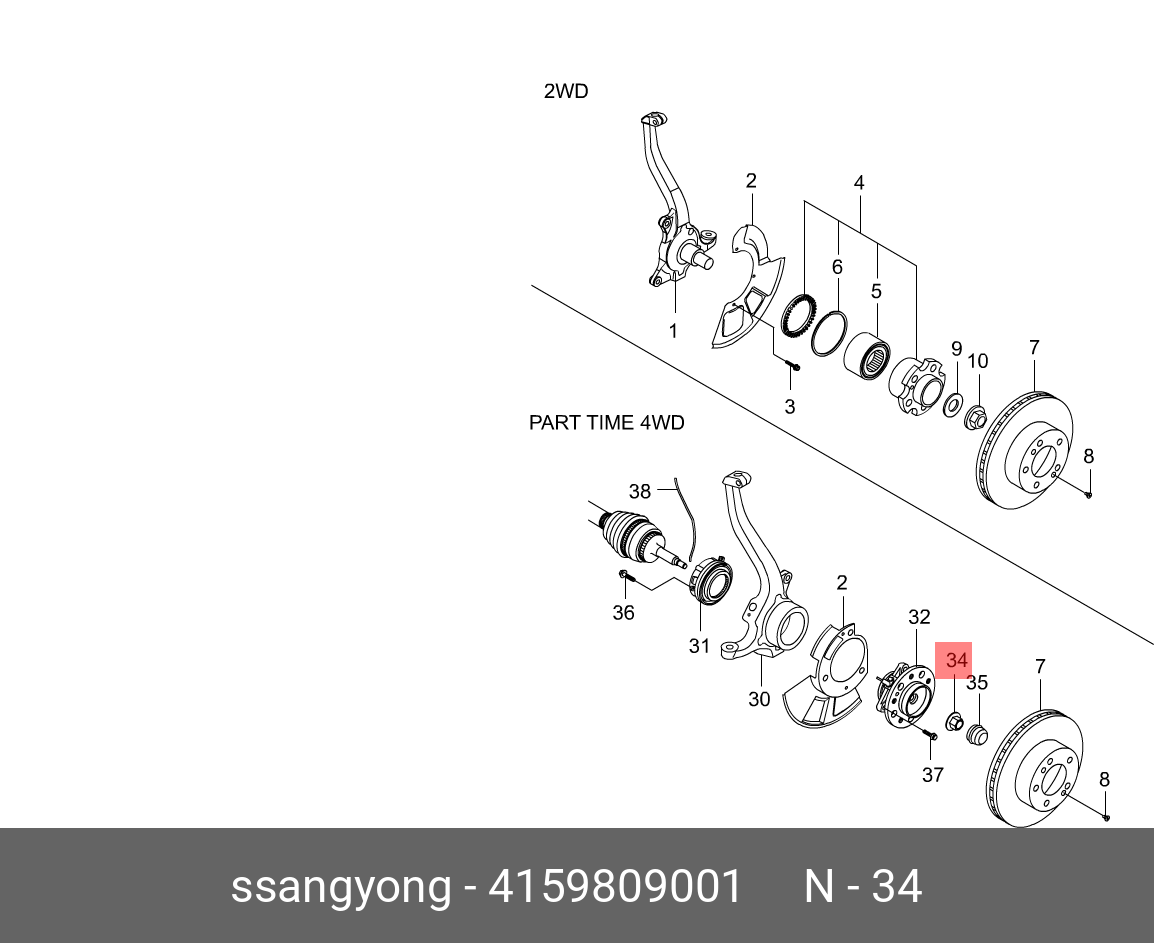 4159809001 SSANG YONG Гайка SSANGYONG G4 Rexton (20-)(G20D) ступицы пердней OE