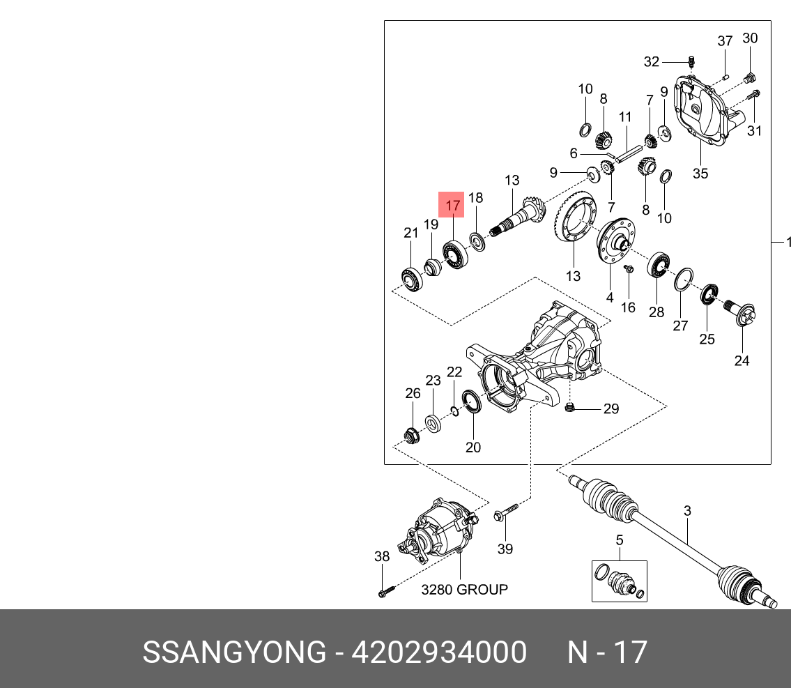 4202934000 SSANG YONG Подшипник хвостовика SSANGYONG Actyon (10-) пары главной внутренний OE