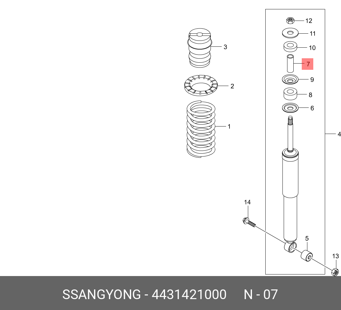 4431421000 SSANG YONG Втулка амортизатора SSANGYONG Actyon (06-),Kyron (05-) заднего металлическая OE