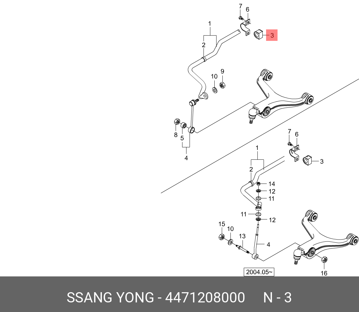 | Наименование | Втулка стабилизатора SSANGYONG Rexton (02-) переднего OE |