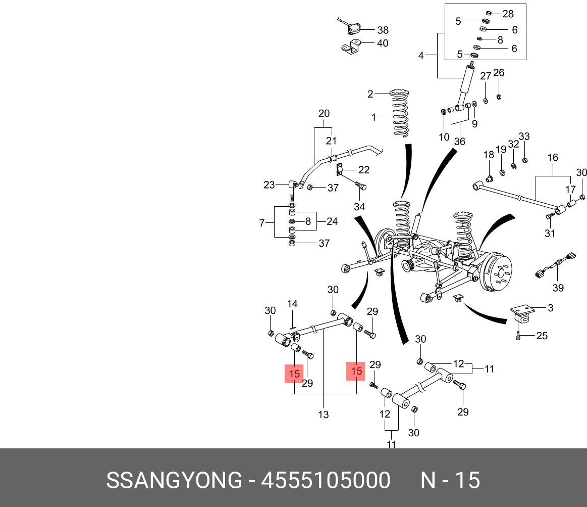 | Наименование | Сайлентблок SSANGYONG Korando (96-) рычага продольного заднего нижнего OE |