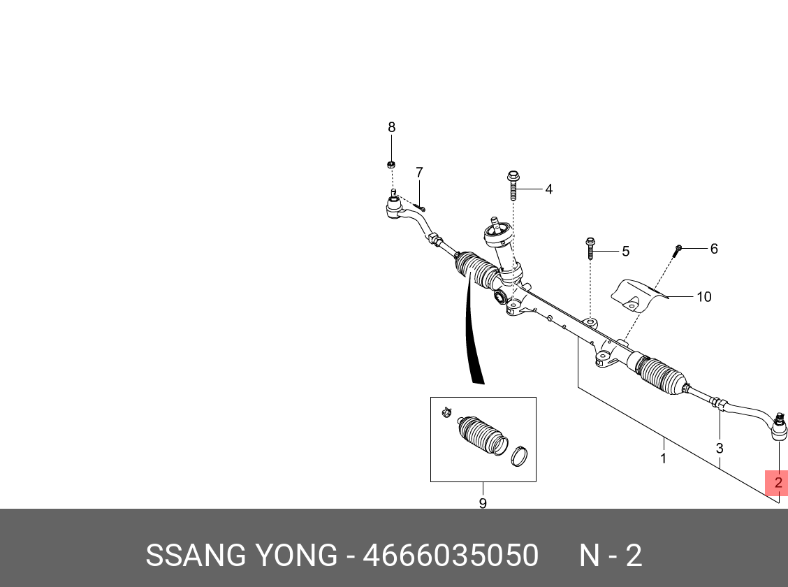 4666035050 SSANG YONG Наконечник рулевой тяги SSANGYONG Tivoli (15-) (G16F,D16F) правый OE