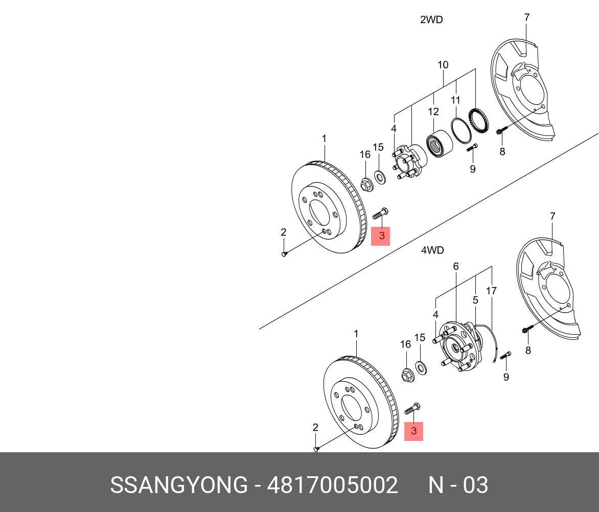 4817005002 SSANG YONG Болт SSANGYONG Actyon (06-/10-),Kyron (05-),Rexton (06-) крепления суппорта OE