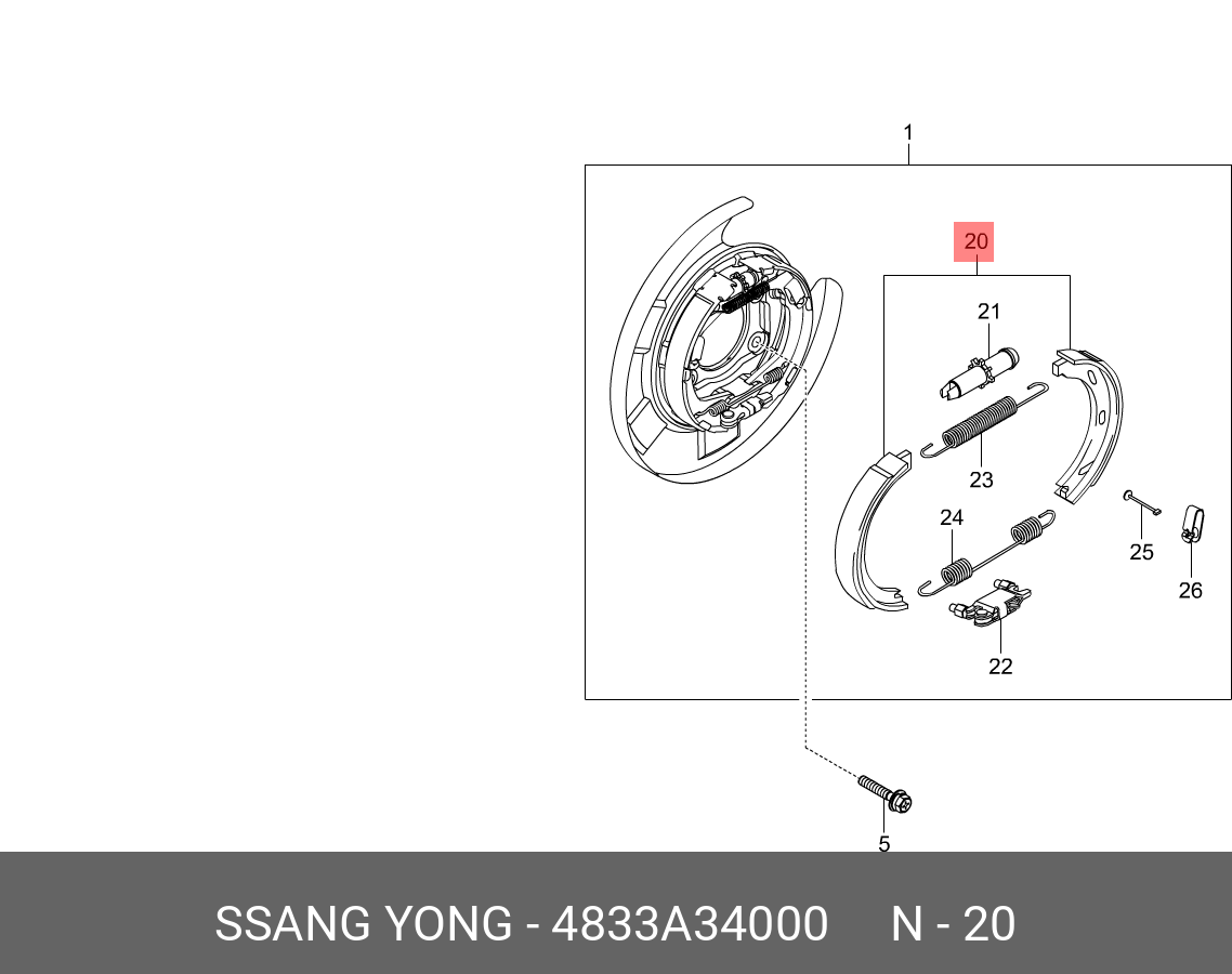 4833A34000 SSANG YONG Колодки тормозные SSANGYONG Actyon (10-) (2WD) стояночного тормоза (4шт.) OE