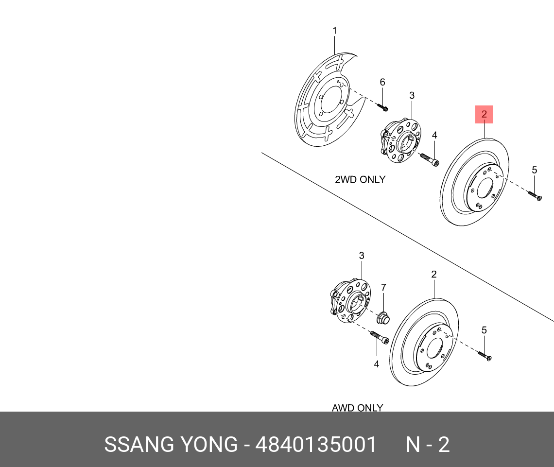 4840135001 SSANG YONG Диск тормозной SSANGYONG Tivoli (15-) (G16F,D16F) (2WD) задний (1шт.) OE