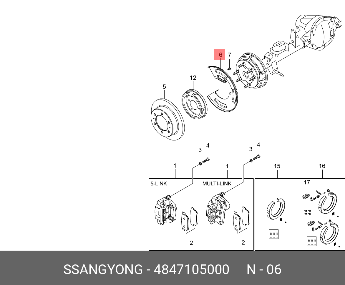 4847105000 SSANG YONG щит зад. торм.диска! левый\ SsangYong Kyron D20/D27/E23/E32 06>