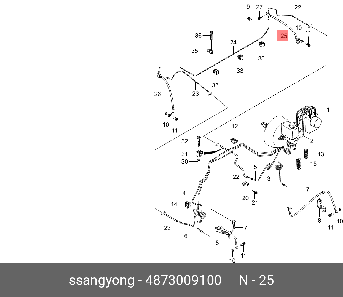 4873009100 SSANG YONG Шланг тормозной SSANGYONG Kyron (05-) (ABS) задний левый OE