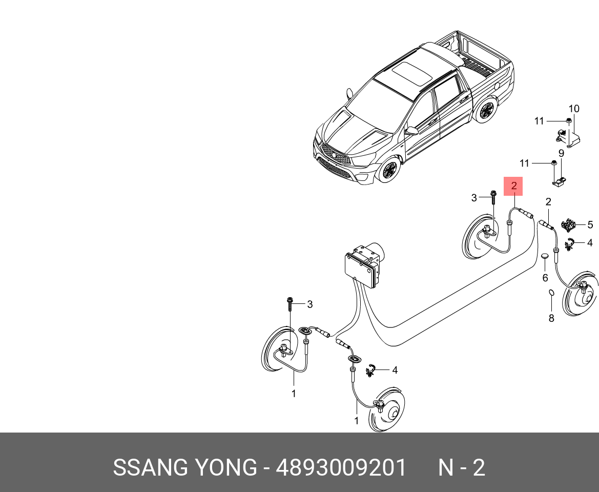 4893009201 SSANG YONG Датчик АБС SSANGYONG Actyon (06-),Kyron (05-),Actyon Sports (06-) колеса заднего