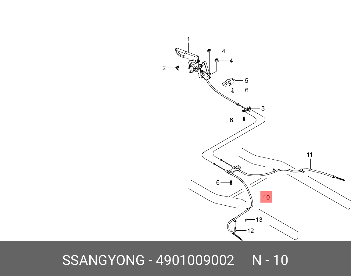 4901009002 SSANG YONG Трос стояночного тормоза SSANGYONG Kyron (05-) (D27,E32) задний левый (multi-lin
