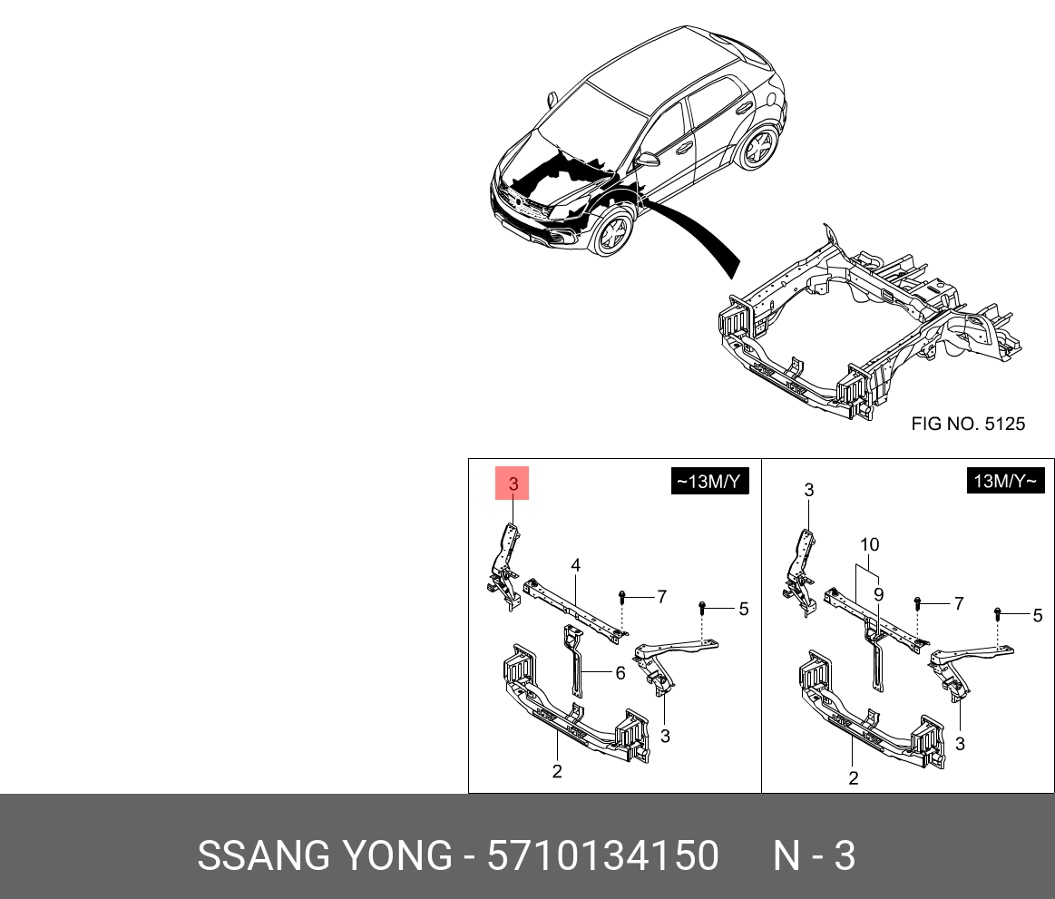 5710134150 SSANG YONG Рамка радиатора SSANGYONG Actyon (13-) боковая левая OE