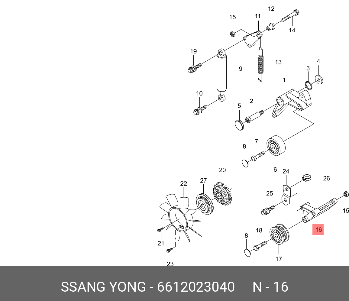6612023040 SSANG YONG 6612023040 Кронштейн ролика ремня генератора S.Y.MUSSO,KORANDO ориг. () обводног