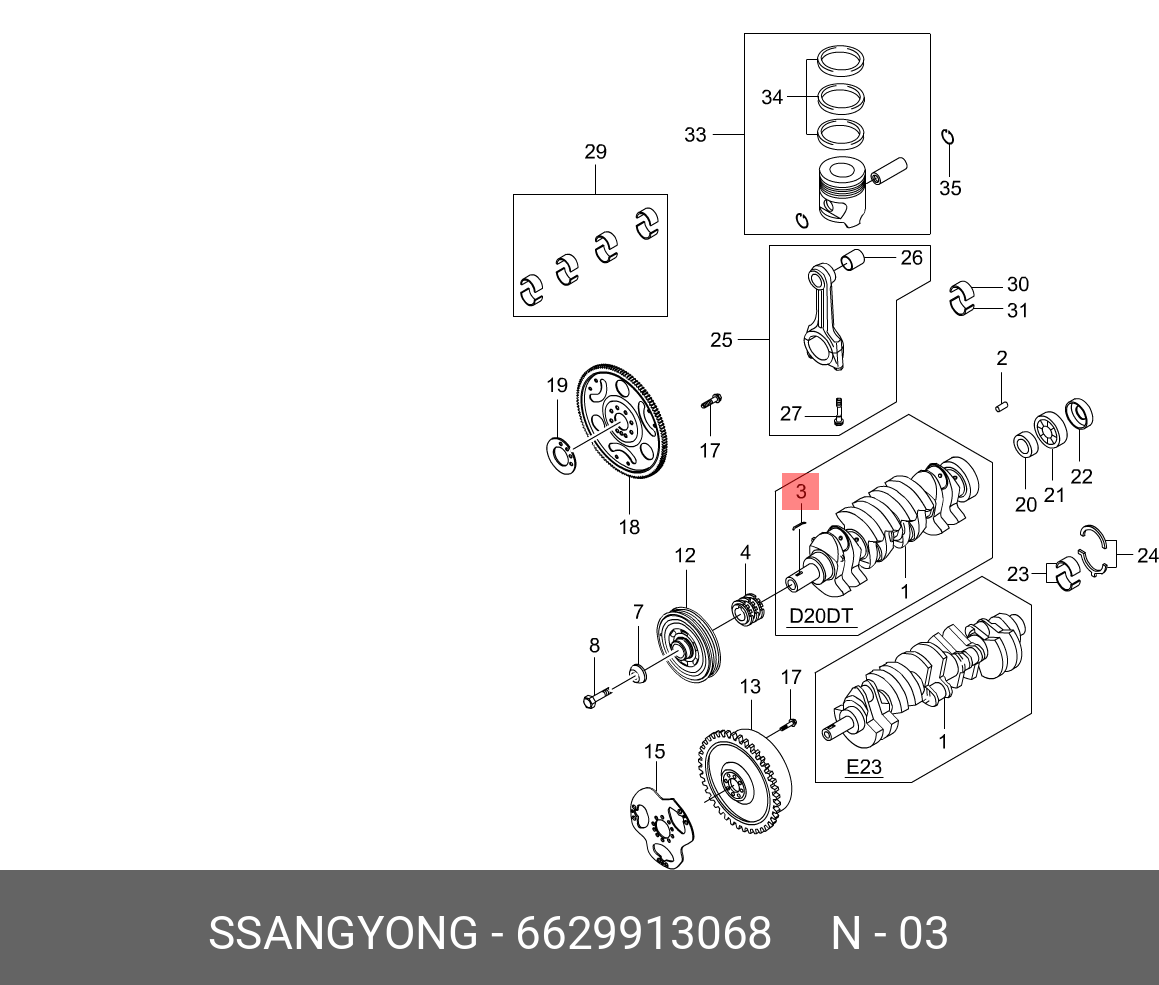 6629913068 SSANG YONG Шпонка SSANGYONG Actyon (06-),Kyron (06-),Actyon Sports (06-) (E23,32) коленвала