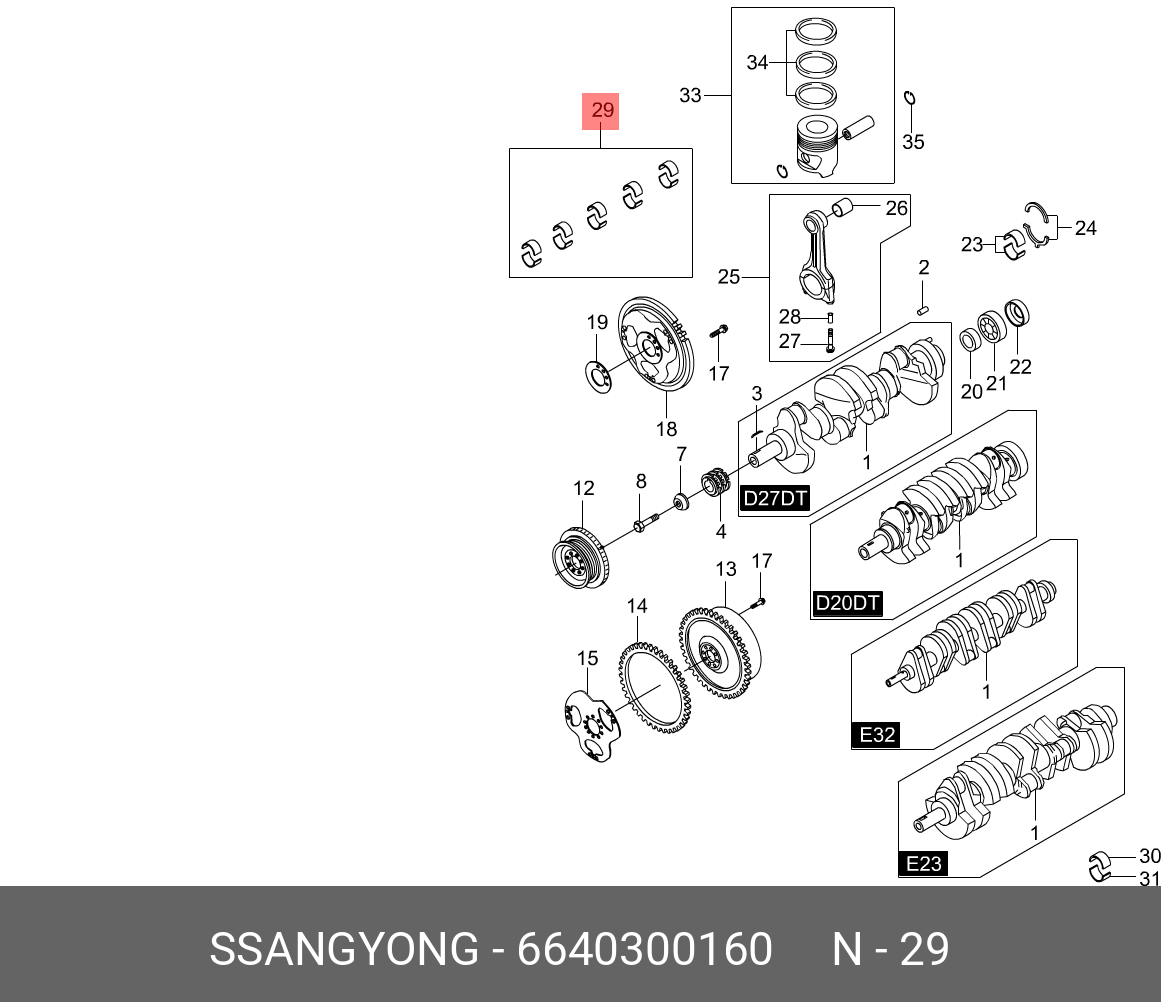 6640300160 SSANG YONG Вкладыши SSANGYONG Kyron (05-),Rexton (04-) (D27) шатунные d+0.00 комплект (10шт
