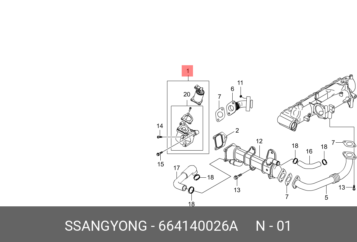 664140026A SSANG YONG Клапан SSANGYONG Kyron (06-),Actyon (06-),Rexton (06-) (D20) рециркуляции отрабо