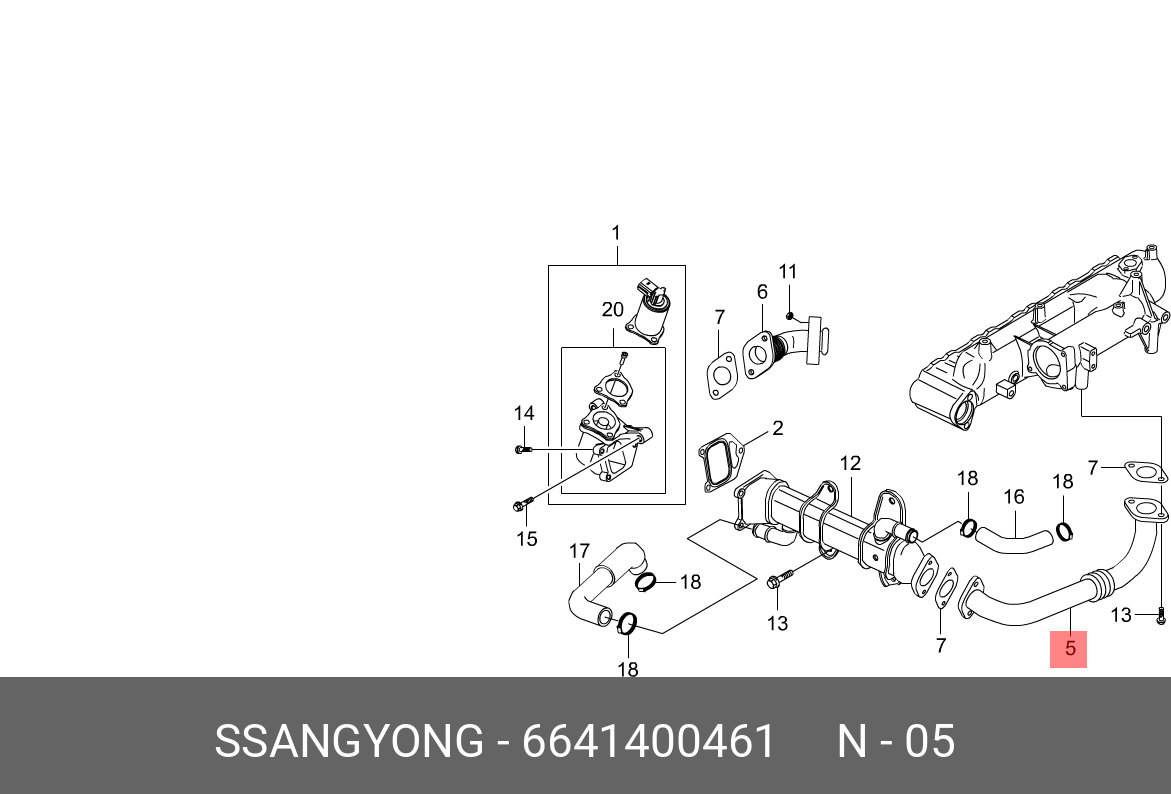 6641400461 SSANG YONG Трубка SSANGYONG Actyon (06-),Kyron (06-) (D20) (ЕВРО-4) клапана EGR левая OE