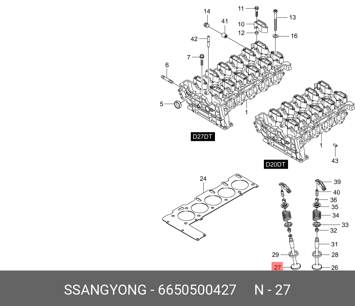 6650500427 SSANG YONG Клапан выпускной SSANGYONG Actyon (06-),Kyron (05-),Actyon Sports (06-),Rexton (