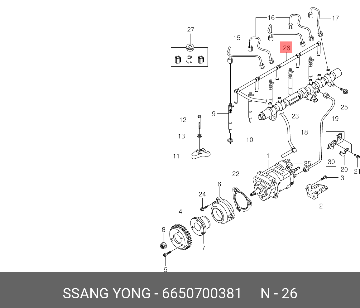 6650700381 SSANG YONG Трубка топливная SSANGYONG Kyron (05-),Rexton (03-) (D27) обратная от форсунок O