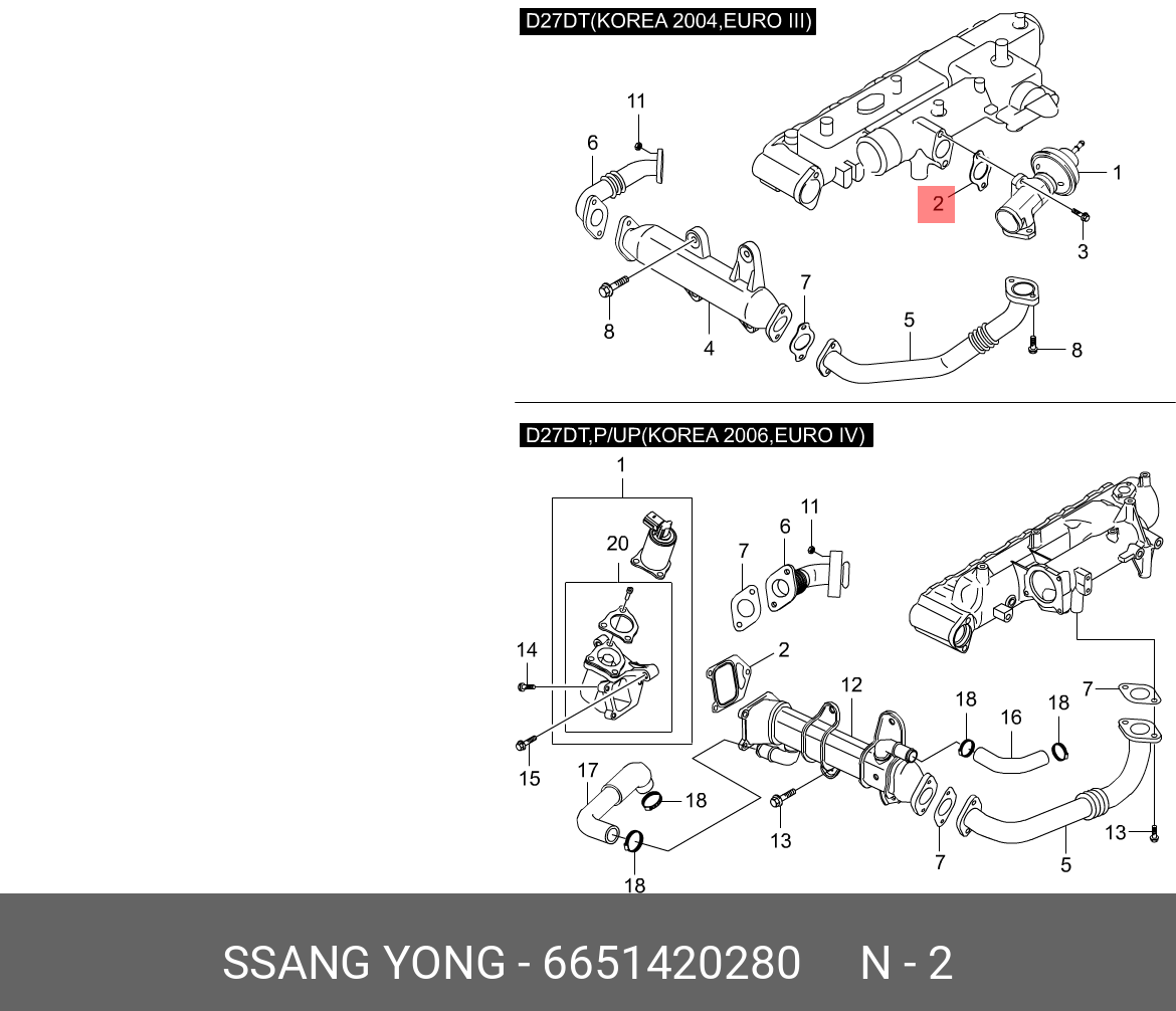 6651420280 SSANG YONG Прокладка SSANGYONG Kyron (06-),Rexton (02-) (D27) клапана рециркуляции отработа