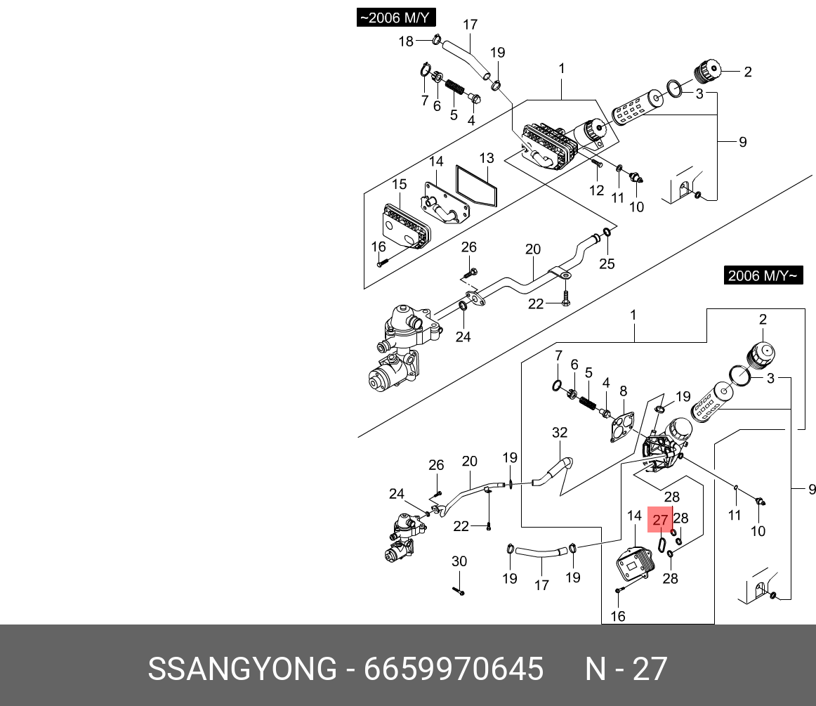6659970645 SSANG YONG Прокладка SSANGYONG Actyon (06-),Kyron (05-),Rexton (05-) радиатора масляного OE
