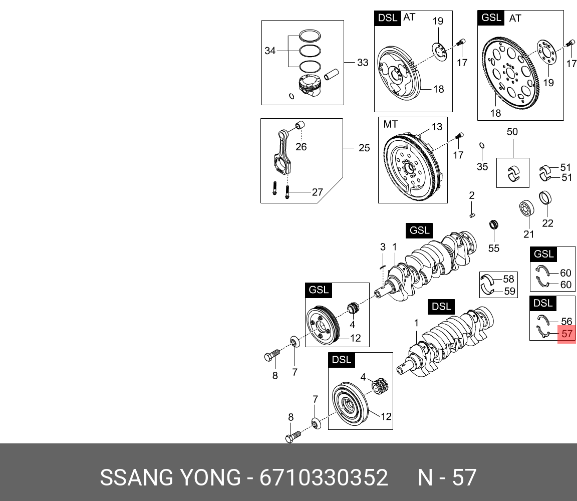 6710330352 SSANG YONG Полукольцо опорное коленвала SSANGYONG Actyon (06-/10-),Kyron (05-) (D20/27) (1ш