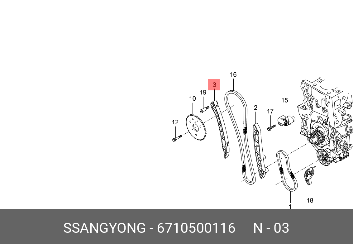 6710500116 SSANG YONG Направляющая SSANGYONG Actyon (10-),Rexton (12-),Stavic (13-) (D20F/22R) цепи ГР