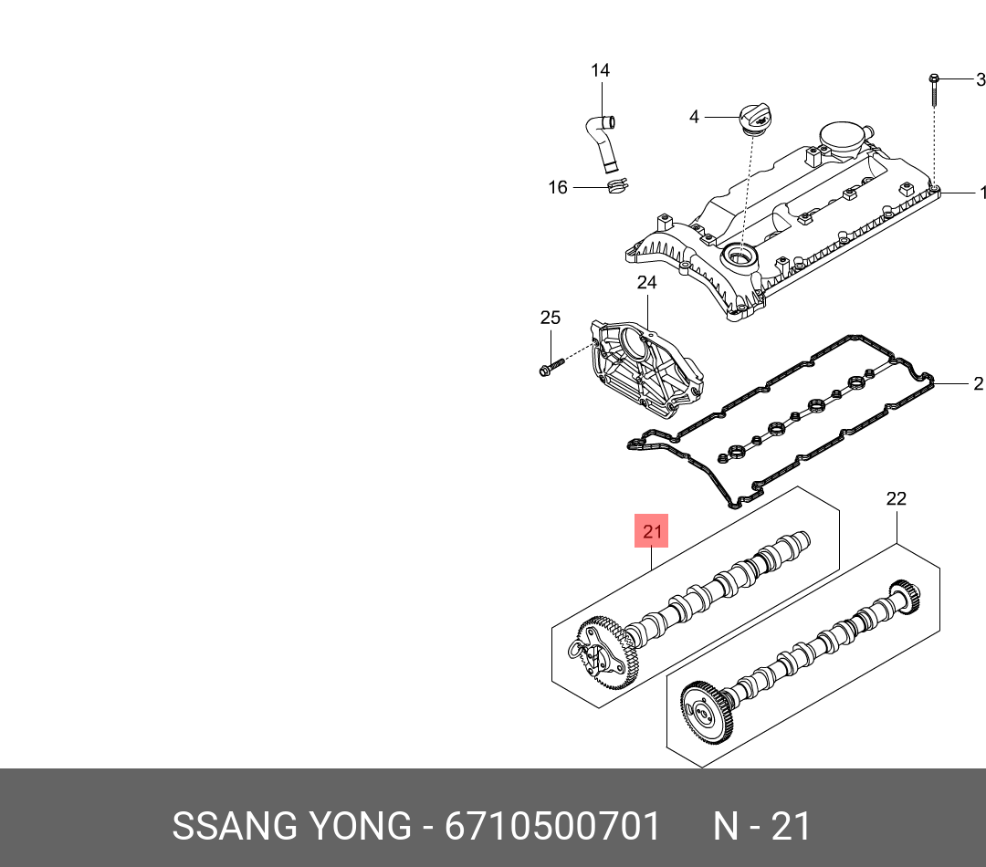 6710500701 SSANG YONG Вал распределительный SSANGYONG Actyon (10-) (D20) выпускных клапанов OE