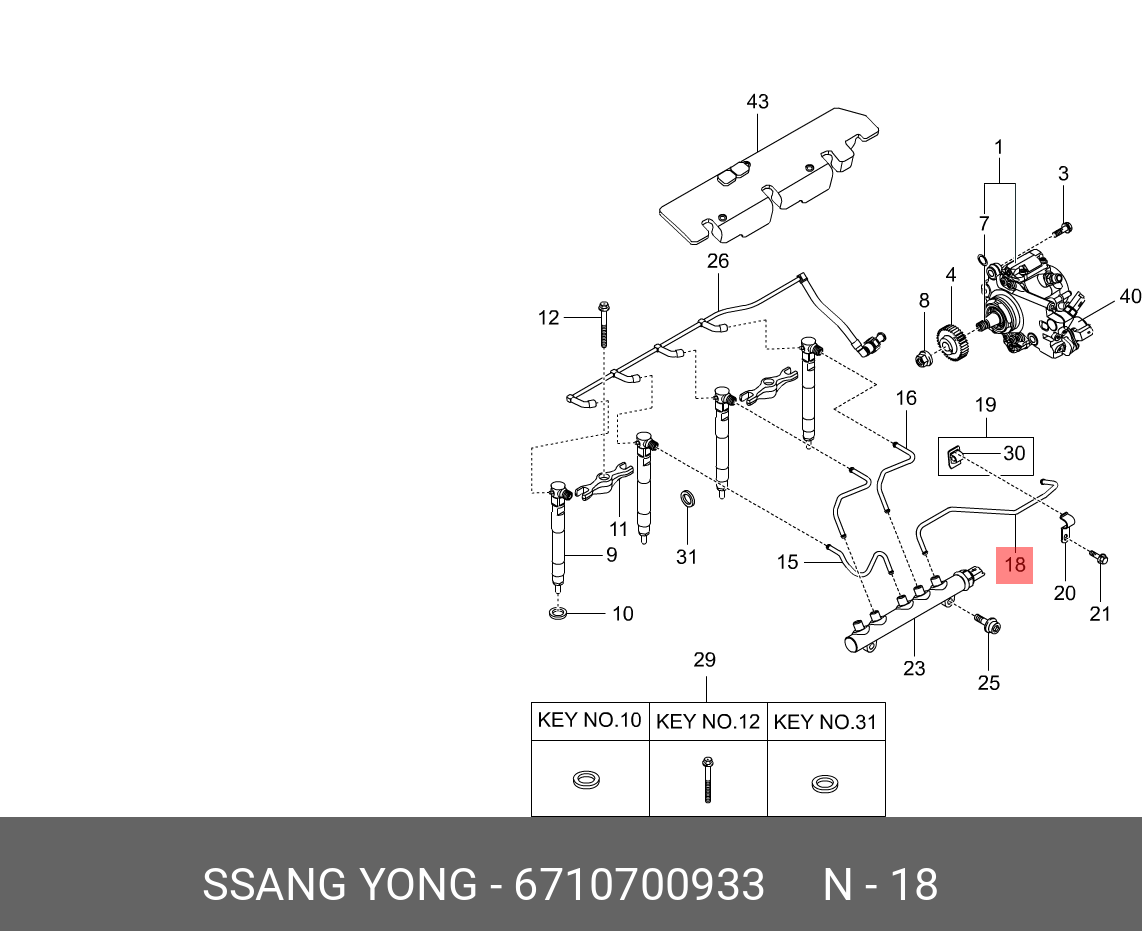 6710700933 SSANG YONG Трубка топливная SSANGYONG Actyon (10-) (D20F) высокого давления от насоса к рам