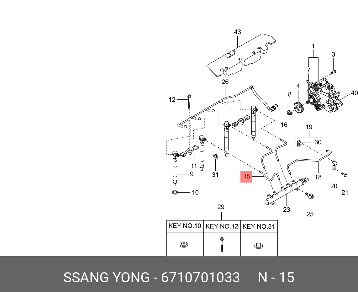 6710701033 SSANG YONG Трубка топливная SSANGYONG Actyon (10-) (D20F) высокого давления 1,3-го цилиндра