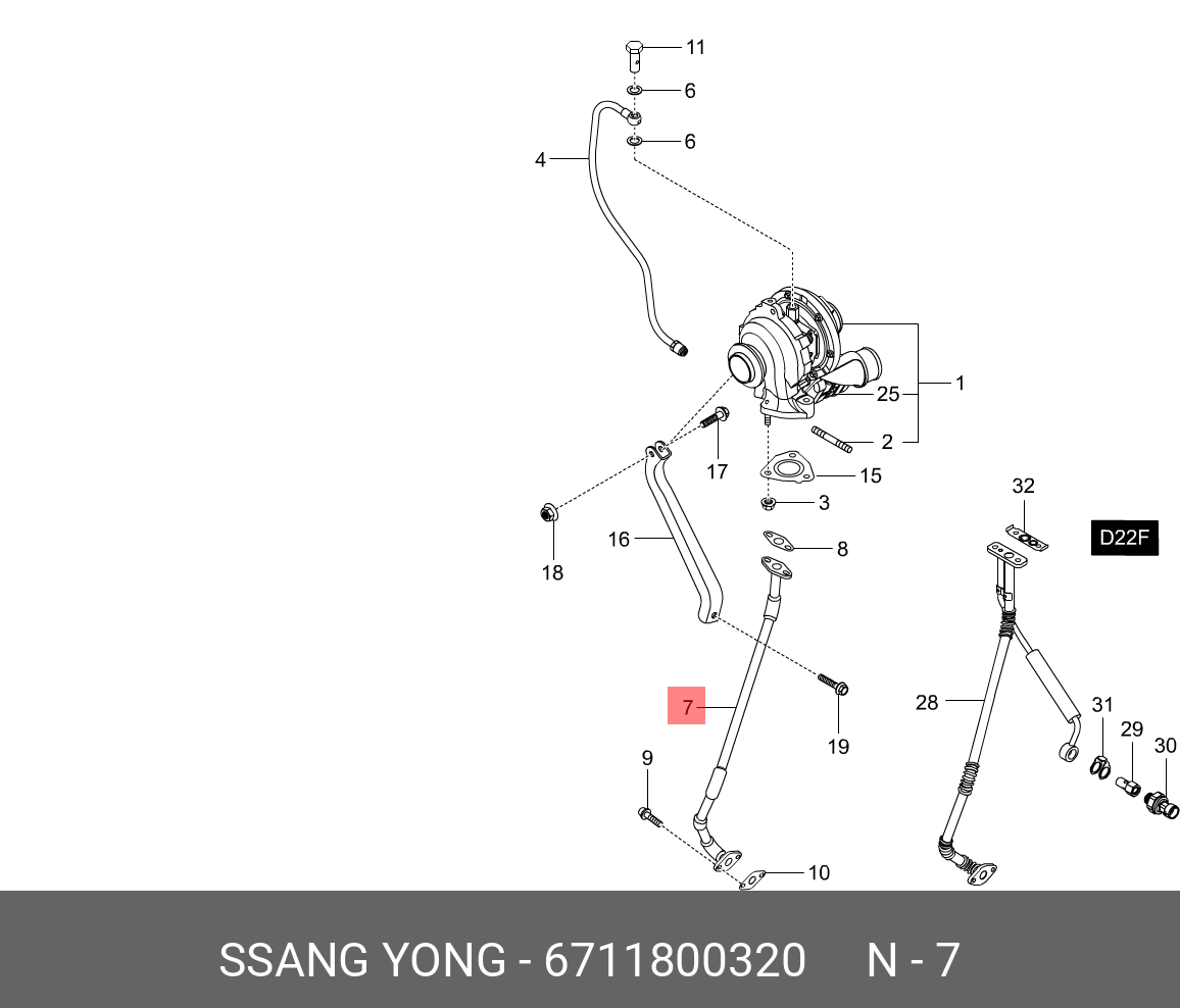 6711800320 SSANG YONG Трубка SSANGYONG Actyon (10-) (D20F) маслопровода турбокомпрессора возвратная OE