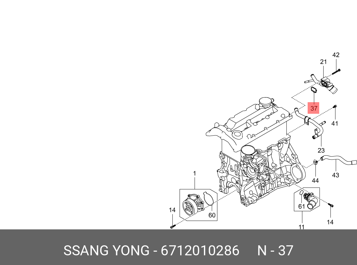 6712010286 SSANG YONG 6712010286 Автозапчасть/Прокладка патрубка системы охлаждения