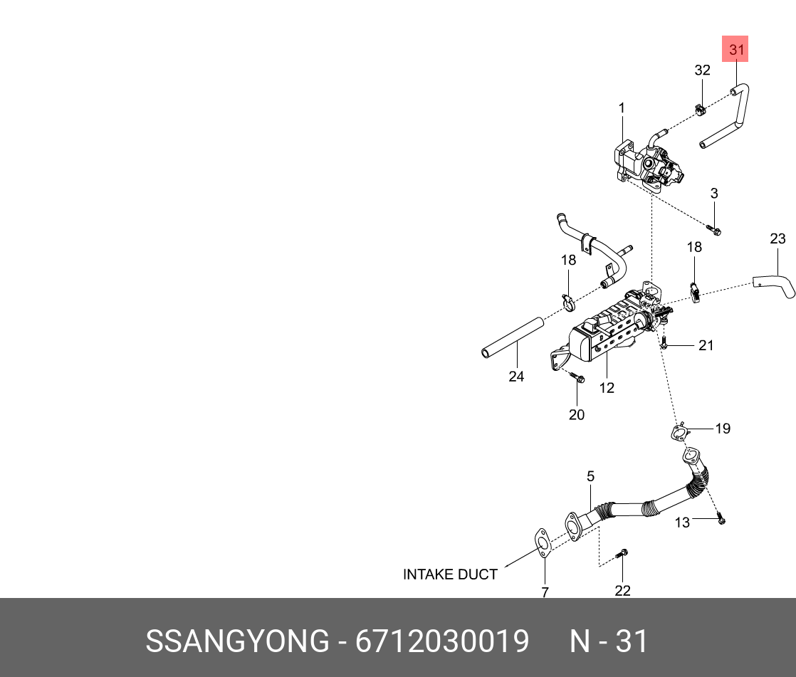 6712030019 SSANG YONG Шланг SSANGYONG Actyon (10-) (D20F) клапана контроля выхлопных газов (EGR) OE