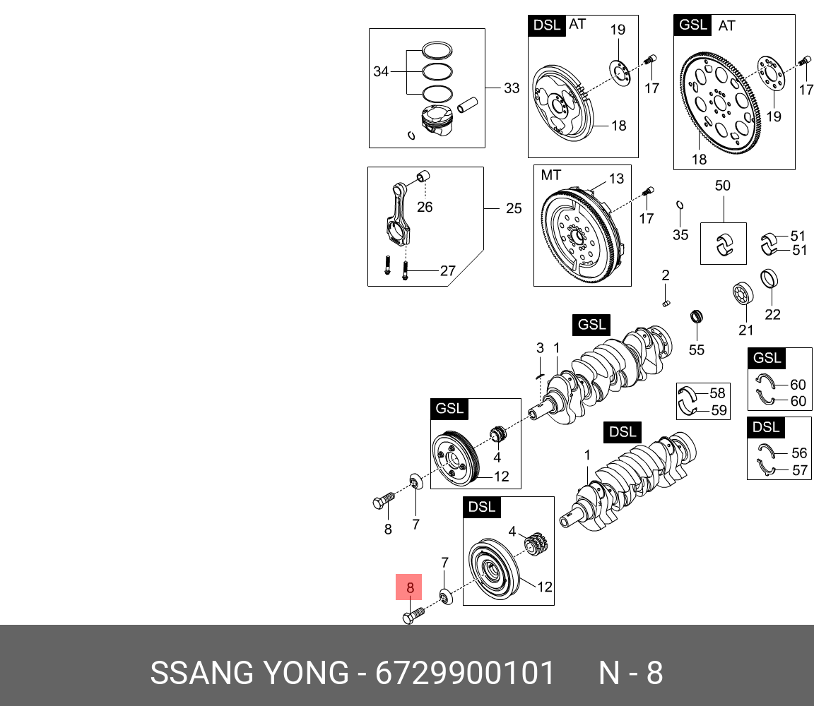 | Наименование | Болт SSANGYONG Actyon (06-/10-),Kyron (05-),Rexton (04-) (D20/27) шкива коленвал |