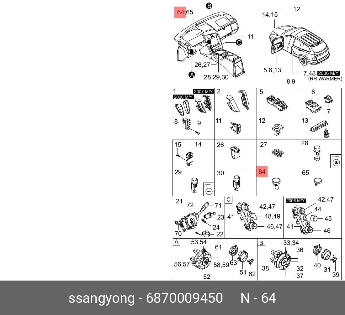 6870009450 SSANG YONG Датчик SSANGYONG Kyron (05-),Actyon (06-),Actyon Sports (06-/12-) света в салоне