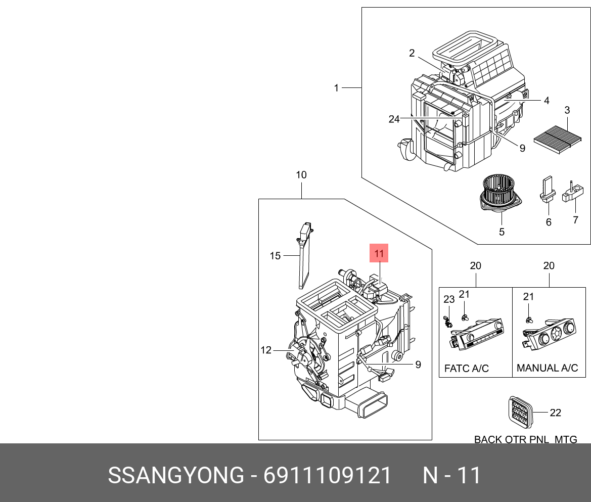 6911109121 SSANG YONG Мотор-редуктор SSANGYONG Actyon (07-),Kyron (07-) привода заслонки отопителя OE