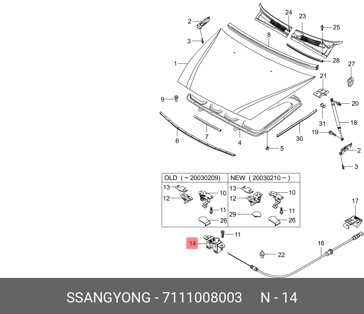 7111008003 SSANG YONG Замок капота SSANGYONG Rexton (02-) OE