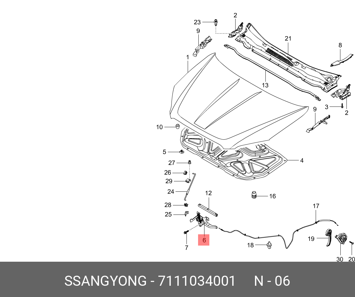 7111034001 SSANG YONG Замок капота SSANGYONG Actyon (10-) OE