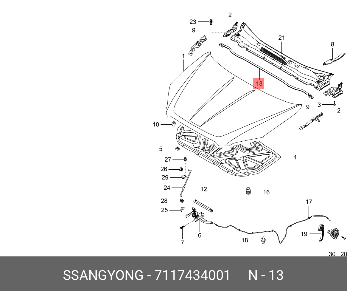 7117434001 SSANG YONG УПЛОТНИТЕЛЬ КАПОТА (ЗАДНИЙ) SSANGYONG