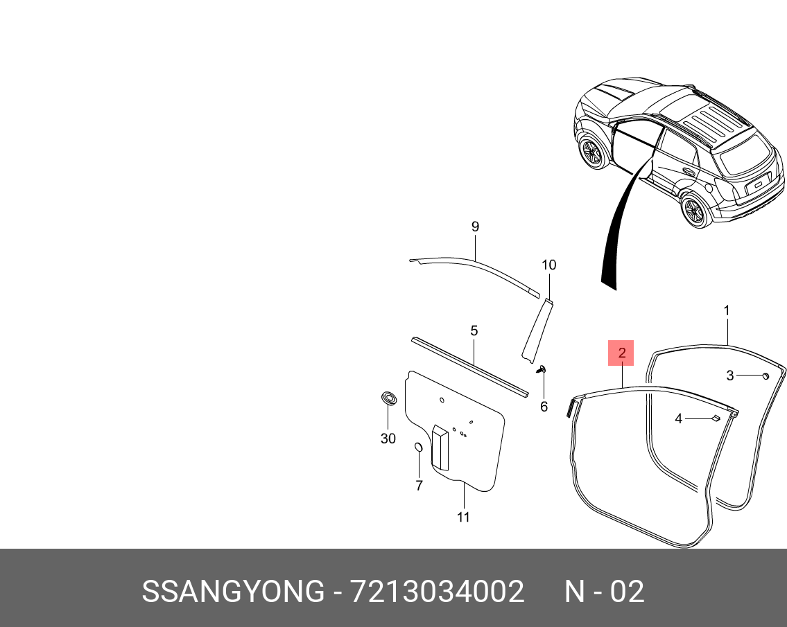 | Наименование | Уплотнитель двери SSANGYONG Actyon (10-) передней левой OE |